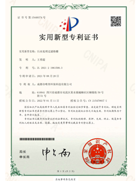 低耗能農村污水處理設備-證書